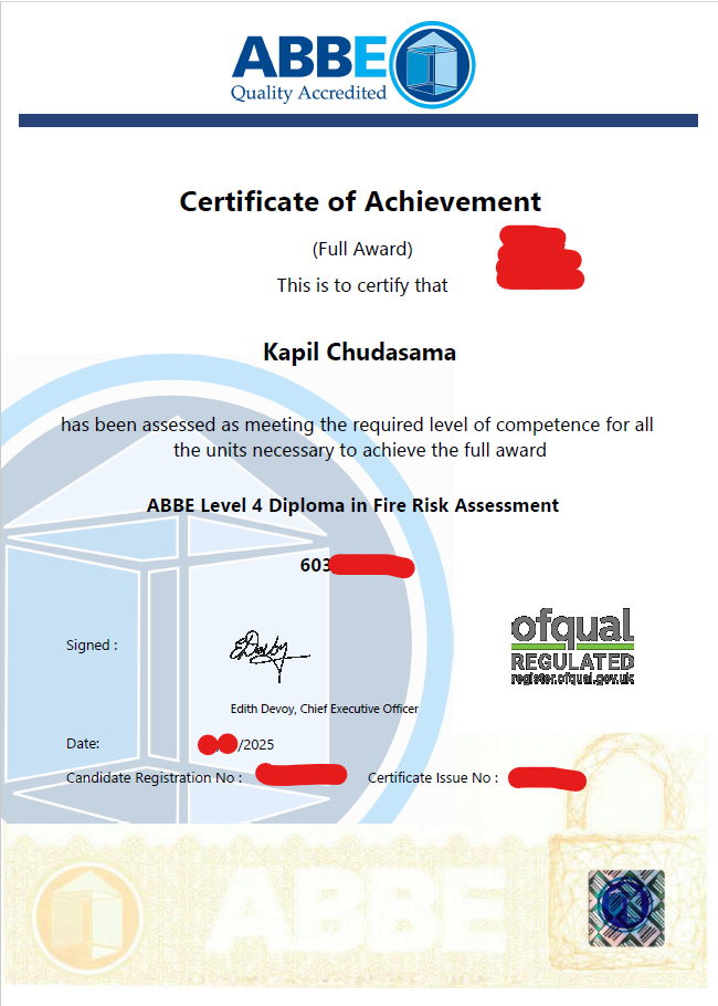 ABBE Level 4 Diploma in Fire Risk Assessment