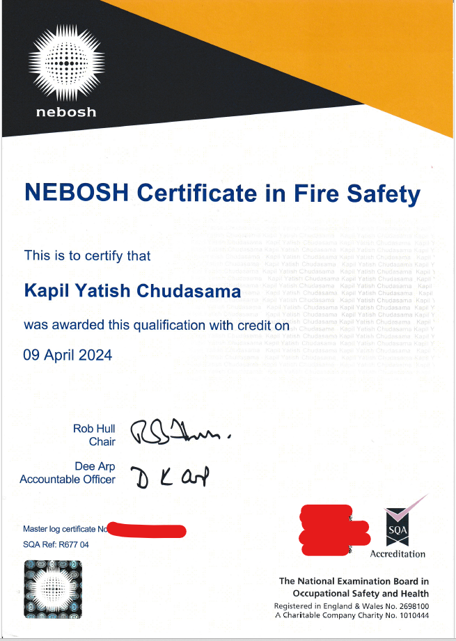 The Responsible Person must ensure that their fire risk assessment is carried out by someone who is competent, meaning they have the necessary training, knowledge, experience and understanding of fire safety principles relevant to the premises. Unredacted certificates evidencing assessor competence will be attached to your Fire Risk Assessment.